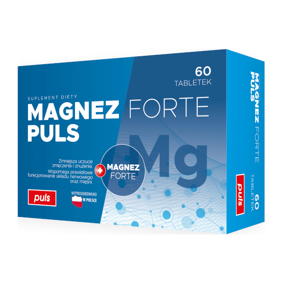 Magnez Forte PULS - do stosowania w stanach zmęczenia, znużenia oraz wspomagająco dla układu nerwowego i mięśni. Zalecany w celu uzupełnienia niedoborów magnezu i witaminy B6 w organizmie.