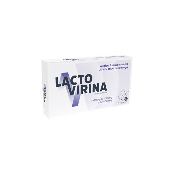 Lactovirina to suplement diety zawierający laktoferynę oraz cynk. Laktoferyna jest wielofunkcyjnym białkiem z grupy transferryn. Jest obecna w wielu płynach ustrojowych i wydzielinach gruczołów, takich jak: ślina, łzy, wydzielina błony śluzowej nosa, dróg oddechowych czy przewodu pokarmowego. Największe stężenie laktoferyny stwierdzono w siarze. Występuje ona również w mleku matki karmiącej, które dostarcza noworodkowi składników odżywczych oraz zapewnia przeciwbakteryjną ochronę. Cynk to minerał, który wspiera prawidłowe funkcjonowanie układu odpornościowego oraz pomaga w ochronie komórek przed stresem oksydacyjnym. Przyczynia się do utrzymania prawidłowego metabolizmu makroskładników odżywczych.