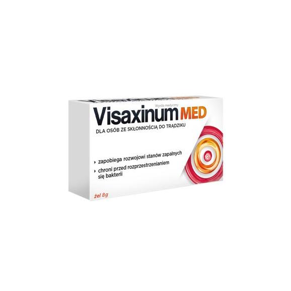 Visaxinum med jest dermatologicznym hydrożelem przeznaczonym do stosowania na skórze ze skłonnością do trądziku. Formuła wyrobu medycznego oparta jest na bazie fizycznej aktywności osmotycznej. Produkt stwarza warunki niekorzystne dla kolonizacji gruczołów łojowych przez Probionibacterium acnes, co zapobiega rozwojowi stanów zapalnych i rozprzestrzenianiu się bakterii. Dodatkowo przyczynia się do redukcji uczucia suchości skóry - odpowiednio ją nawilżając.