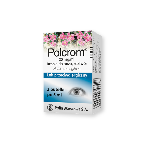 Polcrom to produkt leczniczy o działaniu przeciwalergicznym do stosowania w przypadku alergicznego zapalenia spojówek. Pojemność 10 ml.