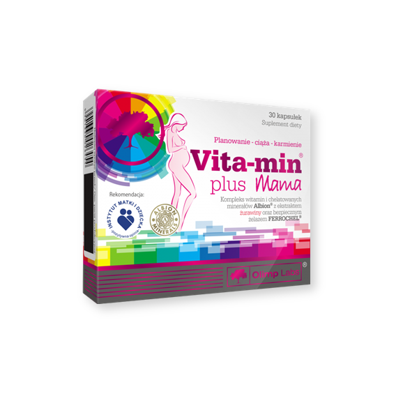 Vita-Min Plus Mama - suplement diety zawierający w swoim składzie kompozycje witaminy i minerałów w postaci chelatów, dodatkowo wzbogacona ekstraktem żurawiny wieloowocowej oraz kwas foliowy.