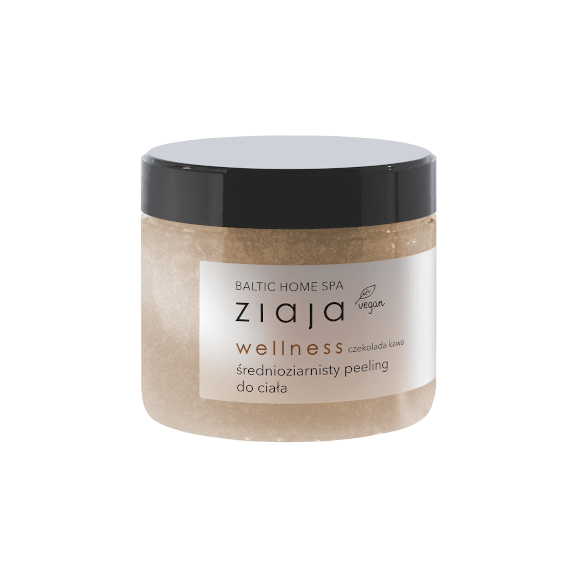 Ziaja Baltic Home Spa Wellness średnioziarnisty peeling do ciała to wegański kosmetyk przeznaczony do pielęgnacji skóry oraz oczyszczania jej z martwego naskórka. Za mechaniczne ścieranie odpowiadają zawarte w składzie peelingu sproszkowane łupiny orzechów włoskich, które są naturalnym i biodegradowalnym składnikiem.