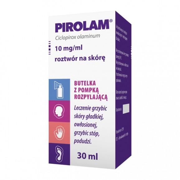 Pirolam to lek przeciwgrzybiczy w formie roztworu na skórę do stosowania miejscowego. Lek zawiera cyklopiroks z olaminą, działający na dermatofity, grzyby drożdżopodobne, pleśnie oraz mieszane zakażenia grzybicze. Roztwór można stosować w leczeniu grzybicy skóry gładkiej i owłosionej a także stóp czy podudzi.