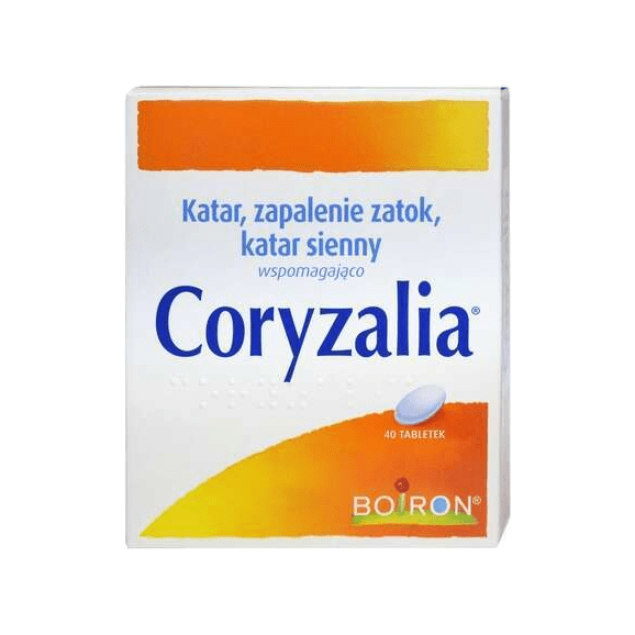 Coryzalia to homeopatyczny produkt leczniczy ze wskazaniami leczniczymi. Coryzalia stosuje się wspomagająco w leczeniu stanów nieżytowych górnych dróg oddechowych zarówno o etiologii wirusowej, jak i alergicznej: takich jak katar (nieżyt błony śluzowej nosa), katar sienny czy zapalenie zatok. Lek przeznaczony jest dla dorosłych, młodzieży i dzieci w wieku powyżej 5 roku życia. Opakowanie produktu zawiera 40 tabletek drażowanych.