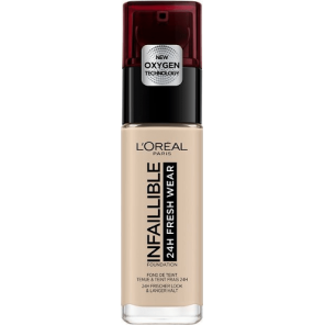 Długotrwały, bezkompromisowy podkład do twarzy, o 24 godzinnej trwałości. Nie wysusza, nie pozostawia efektu maski, zapobiega błyszczeniu skóry. Doskonale odświeża i kryje niedoskonałości, dając efekt świeżej i zdrowej cery nawet w najtrudniejszych warunkach. Dzięki zawartości kwasu hialuronowego, ujędrnia i nawilża skórę. Nowa wersja znanego i uwielbianego przez klientki na całym świecie Loreal Infallible 24H.