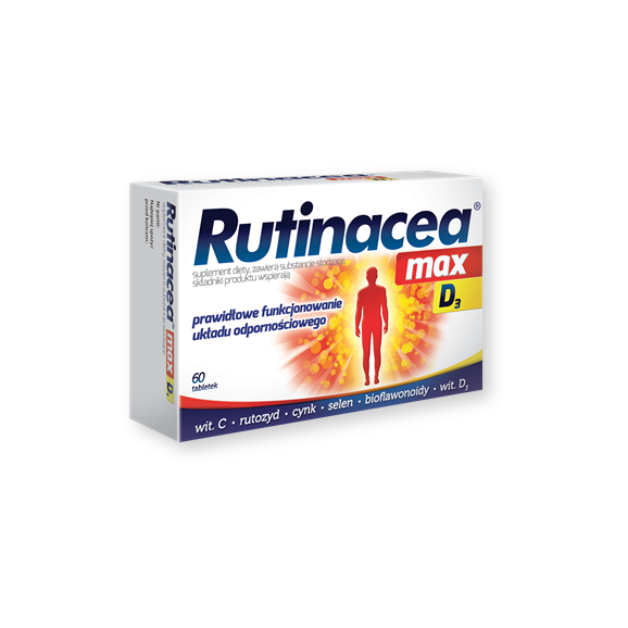 Rutinacea max D3 - suplement diety zawierający składniki wspomagające prawidłowe funkcjonowanie układu odpornościowego. Produkt przeznaczony dla osób dorosłych.