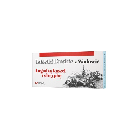 Tabletki Emskie z Wadowic, tabletki do ssania przeznaczone są do łagodzenia kaszlu i chrypki.