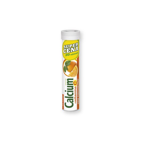Calcium + Vitaminum C, tabletki musujące o smaku pomarańczowym, 20 szt. (Polski Lek)