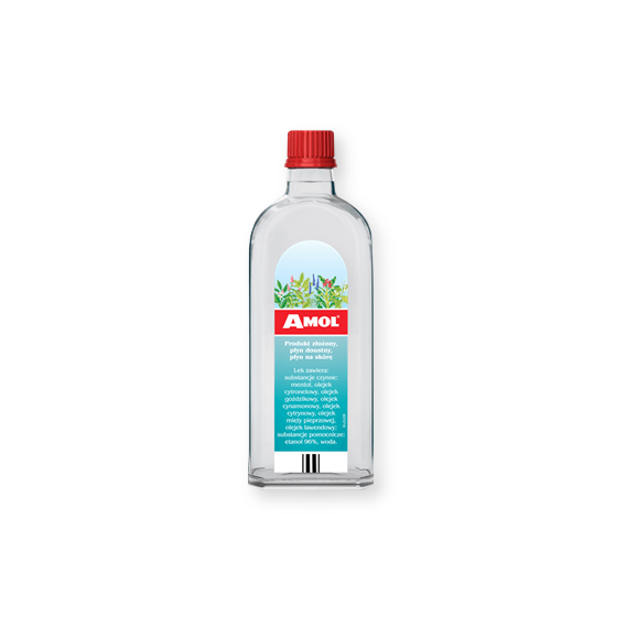 Amol jest produktem leczniczym w postaci płynu, zawierający tradycyjnie stosowane olejki eteryczne.