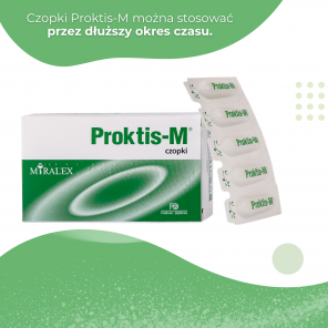 • Czas stosowania zależy od rozwoju objawów. W razie konieczności Proktis-M czopki doodbytnicze mogą być stosowane przez dłuższy czas.