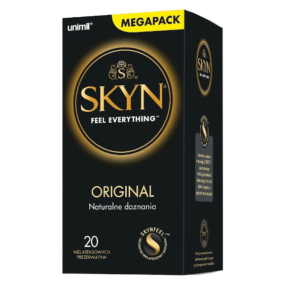 Unimil SKYN Original to nielateksowe prezerwatywy, które zapewniają niezwykle naturalne i prawdziwie intymne seksualne doznania. Nowa generacja produktów Unimil SKYN Original została wykonana z cienkiego, elastycznego materiału SKYNFEEL™, idealnie dopasowującego się do ciała. Unimil SKYN to połączenie wytrzymałości z delikatnością bardzo cienkiej prezerwatywy dla jeszcze lepszych doznań. Duże opakowanie – zawiera 20 sztuk.