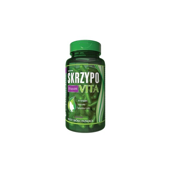 Skrzypovita - suplement diety, zawierający skrzyp polny, pokrzywę, witaminy oraz cynk. Produkt przeznaczony dla osób dorosłych.