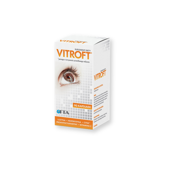 Vitroft to suplement diety, który zawiera kompozycję odpowiednio wyselekcjonowanych składników aktywnych: L-lizyny, hesperydyny, proantocyjanidyn, witaminy C oraz cynku.