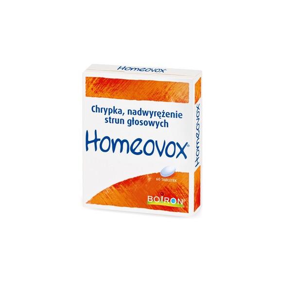 Boiron Homeovox to homeopatyczny lek w postaci tabletki do ssania stosowany na chrypkę oraz podczas nadwyrężenia strun głosowych.