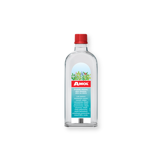 Amol jest produktem leczniczym w postaci płynu, zawierający tradycyjnie stosowane olejki eteryczne.