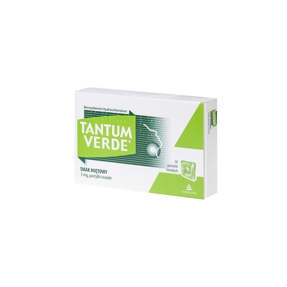Tantum Verde smak miętowy, 3 mg, pastylki twarde, 30 szt.
