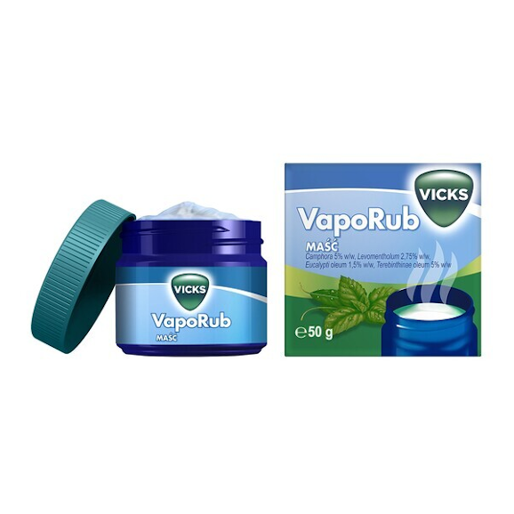 Vicks VapoRub to lek w postaci maści, stosowany przy objawach podrażnień oraz stanów zapalnych błony śluzowej nosa i gardła. Maść zawiera substancje łagodzące dolegliwości górnych dróg oddechowych w katarze.