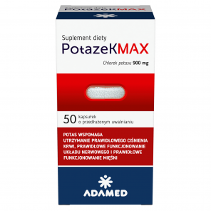 Potazek MAX - suplement diety wspomagający pokryć zapotrzebowanie organizmu na potas. Produkt przeznaczony dla osób dorosłych.