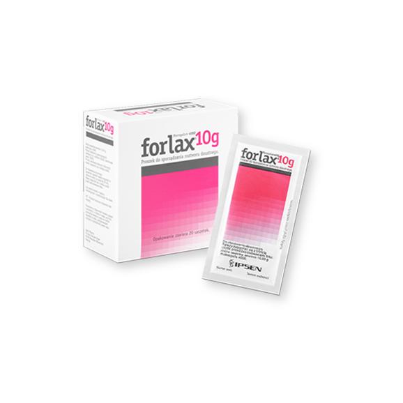 Forlax 10 g - lek stosowany w objawowym leczeniu zaparć u dorosłych i dzieci w wieku od 8 lat. Substancją czynną leku jest makrogol 4000. Forlex należy do grupy leków o działaniu osmotycznym, działa poprzez zwiększenie ilość wody w stolcu, co pomaga przyśpieszyć pracę jelit. Forlax nie wchłania się do krwiobiegu i nie ulega rozkładowi w organizmie. Opakowanie zawiera 20 saszetek.