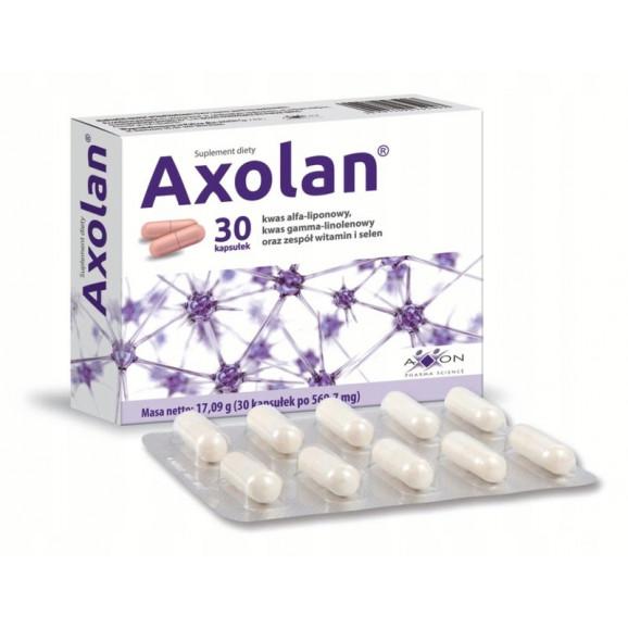 Axolan to suplement diety w kapsułkach, opracowany z myślą o uzupełnianiu diety w składniki o działaniu antyoksydacyjnym oraz wspierającym prawidłowe funkcjonowanie organizmu. Kwas alfa‑liponowy jest głównym składnikiem preparatu i wykazuje działanie antyoksydacyjne. Kwas gamma‑linolenowy (omega‑6) pochodzi z oleju z ogórecznika lekarskiego. Zawarte w formule witaminy z grupy B (B1, B2, B5, B6) wspierają m.in. metabolizm energetyczny i funkcjonowanie układu nerwowego, a witamina E i selen pomagają chronić komórki przed stresem oksydacyjnym.