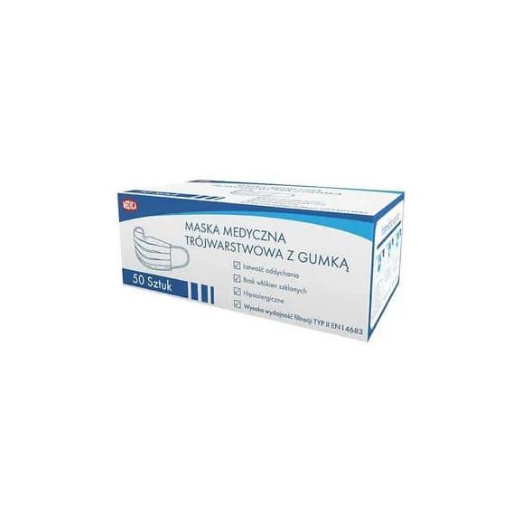 Maska medyczna trójwarstwowa Medica, z gumką, typ II, 50 szt.