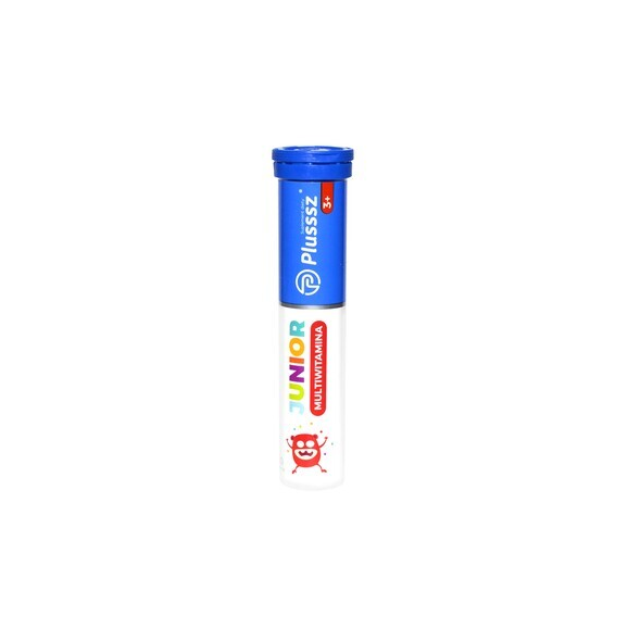Plusssz Junior Multiwitamina to suplement diety, który w swoim składzie zawiera zestaw witamin dla dzieci w wieku przedszkolnym m.in: z grupy B oraz witamine C, E. Ma postać dwuwarstwowej tabletki, dzięki czemu możemy sporządzić napój o smaku malinowym.