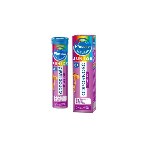 Plusssz Junior Odporność Complex - suplement diety zawierający składniki wspomagające odporność. Produkt przeznaczony dla dzieci powyżej 3 roku życia.