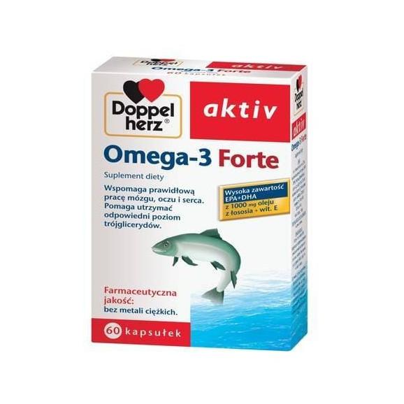 Doppelherz aktiv Omega-3 Forte to suplement diety przeznaczony do wspomagania prawidłowej pracy mózgu, narządu wzroku i serca. Pomaga utrzymać odpowiedni poziom trójglicerydów we krwi.
